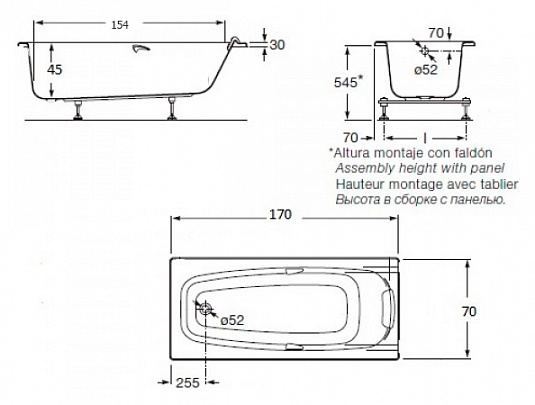 Акриловая ванна 170x70 Roca Sureste ZRU9302769