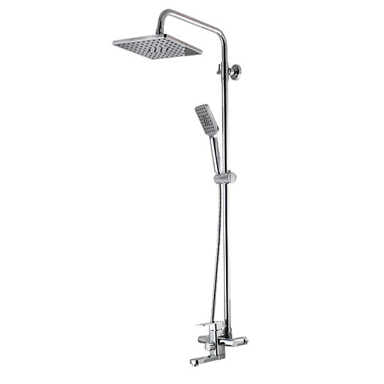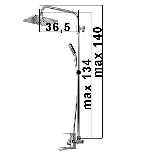 -раздвижная штанга(макс 140 см) круглая -верхний тропический душ 25 см/25 см -душевая лейка 3 режима -крепление к стене -душевой шланг LUX 150 см -эксцентрики 2 шт -отражатели 2 шт -крепление душа на штангу |