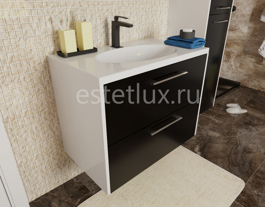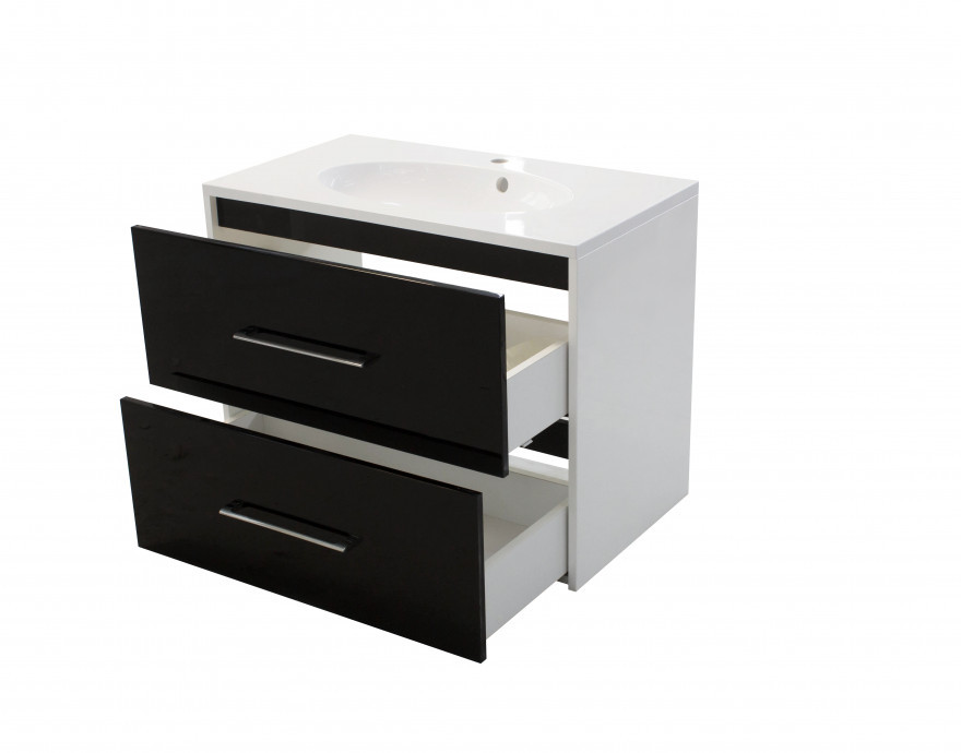 Vegas дает возможность исполнить индивидуальное решение. Тумба укомплектована раковиной из литьевого мрамора с геометрическими формами. Сама раковина прямоугольная, чаша овальная, что дает комплекту дополнительную изысканность. В тумбе располагаются 2 ящика, максимально удобные для хранения и функционального размещения. Мебель выполнена из влагостойкого ЛДСП и качественного MDF с использованием эмали RENNER (Италия). Ящики снабжены системой плавного закрывания. Для мебели используется фурнитура BLUM (Австрия).