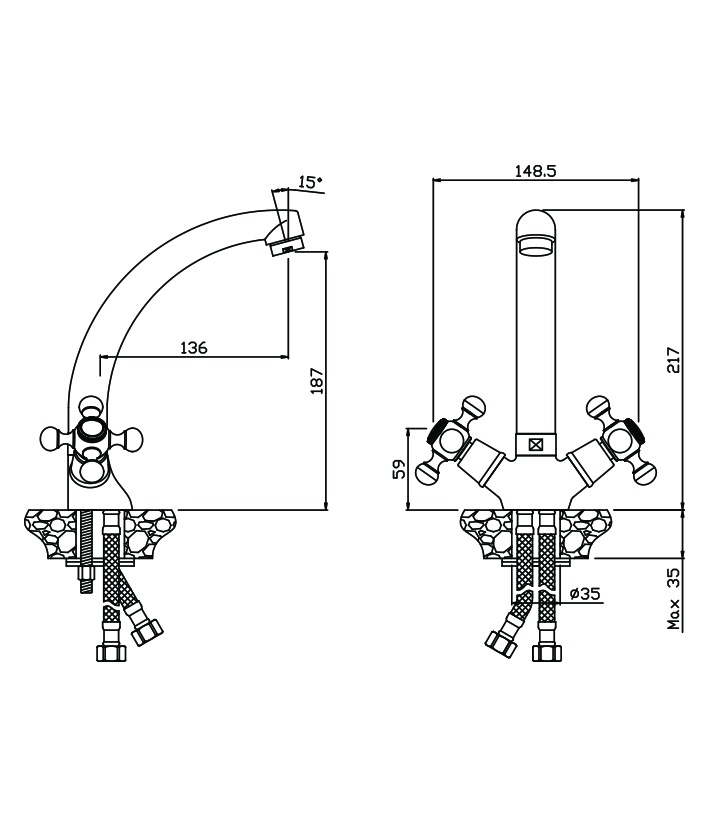 Двузахватный смеситель для кухни классического дизайна Girona с удобными маховиками и высоким изливом.