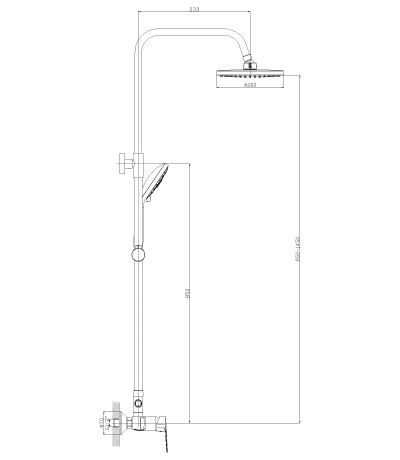 Смеситель для душа с регулируемой высотой штанги и верхней душевой лейкой "Тропический дождь" S35-45