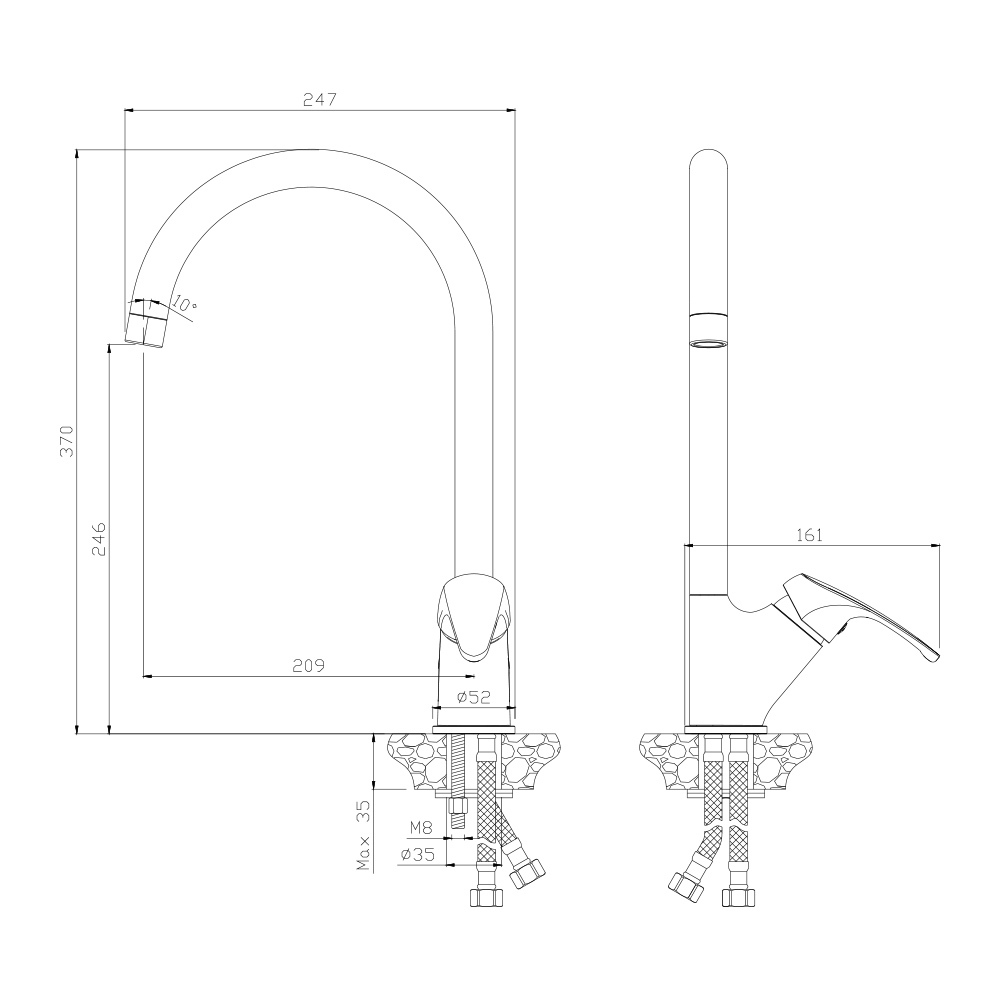 Керамический картридж SILENT OLIVE'S 35 мм Пластиковый аэратор ECO OLIVE'S Гибкая подводка OLIVE'S ½' 50 см Латунный пьедестал Комплект крепления
