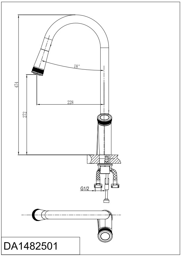 Смеситель для кухни D&K Bayern.Alfeld DA1482501 с выдвижной лейкой