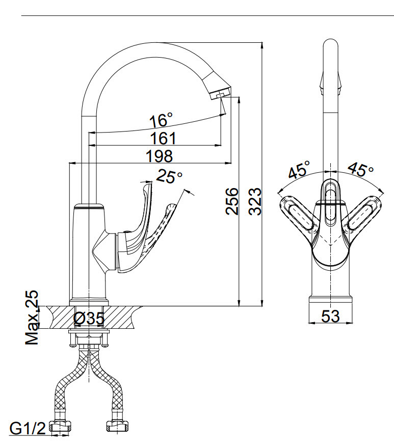 Смеситель для кухни D&K Rhein.Eucharius DA1372423 Гарантия - 5 лет. Бесплатное сервисное обслуживание "D&K" - 10 лет.* Смесители немецкого бренда "D&K" производятся из латуни класса «А», что соответствует стандартам латуни HPB59-1, в РФ марка ЛЦ40С (ГОСТ 15527-2004) Толщина стенок смесителей «D&K» составляет 2,5 – 3,5 мм, Картридж D-35 мм. с высокопрочными пластинами из минерала Корунд (Al₂O₃) оксида алюминия. Низкий уровень шума: 17-19 дБ (сопоставим с шелестом листвы). Количество циклов открытия/закрытия - 500 000 Изделие тестируются под давлением воды и воздуха от 3 Атм до 10 Атм, на работоспособность комплектующих и качества сборки в соответствие стандартам. Высота смесителя: 323 мм. Длина излива: 256 мм. Илив поворотный на 360грд. Пластиковый аэратор установлен под углом для комфортной эксплуатации, уменьшает расход воды. Гибкая подводка на 1/2" - 40см. Высокое качество по доступной цене. Изделие имеет сертификат соответствия ГОСТ * - Бесплатное сервисное обслуживание "D&K" - 10 лет.