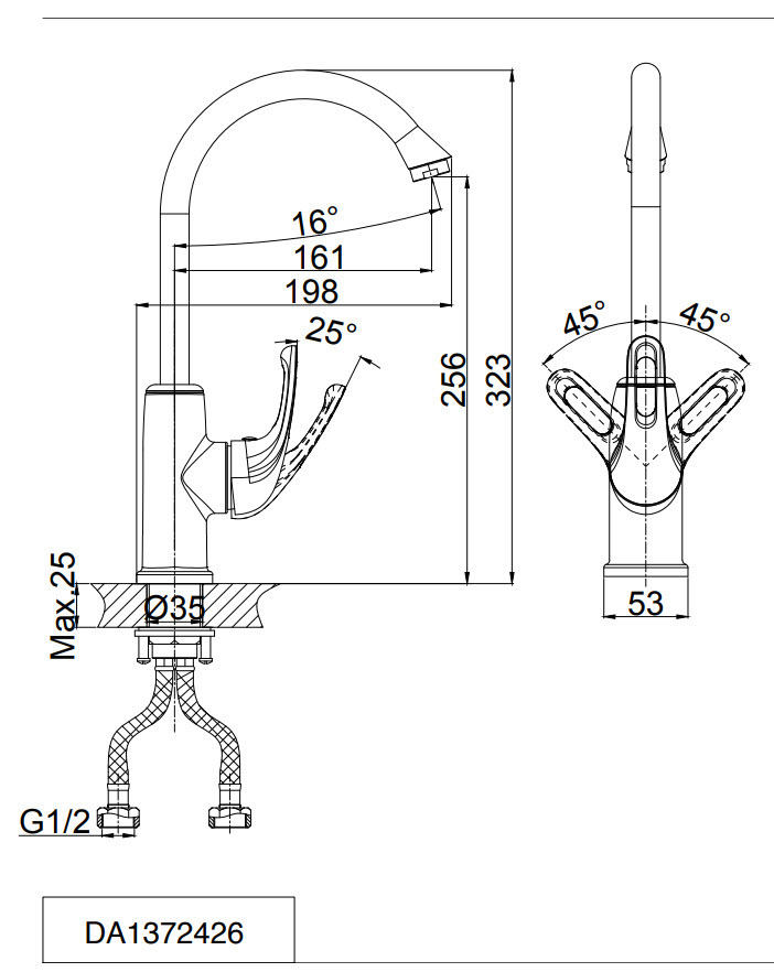Смеситель для кухни D&K Rhein.Eucharius DA1372426 Гарантия - 5 лет. Бесплатное сервисное обслуживание "D&K" - 10 лет.* Смесители немецкого бренда "D&K" производятся из латуни класса «А», что соответствует стандартам латуни HPB59-1, в РФ марка ЛЦ40С (ГОСТ 15527-2004) Толщина стенок смесителей «D&K» составляет 2,5 – 3,5 мм, Картридж D-35 мм. с высокопрочными пластинами из минерала Корунд (Al₂O₃) оксида алюминия. Низкий уровень шума: 17-19 дБ (сопоставим с шелестом листвы). Количество циклов открытия/закрытия - 500 000 Изделие тестируются под давлением воды и воздуха от 3 Атм до 10 Атм, на работоспособность комплектующих и качества сборки в соответствие стандартам. Высота смесителя: 323 мм. Длина излива: 256 мм. Илив поворотный на 360грд. Пластиковый аэратор установлен под углом для комфортной эксплуатации, уменьшает расход воды. Гибкая подводка на 1/2" - 40см. Высокое качество по доступной цене. Изделие имеет сертификат соответствия ГОСТ * - Бесплатное сервисное обслуживание "D&K" - 10 лет. (Бесплатная р
