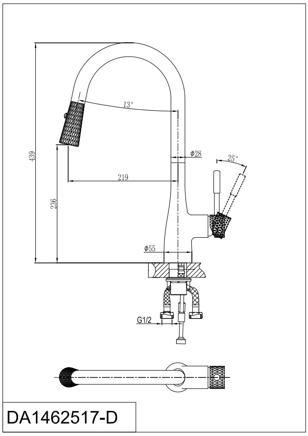 Смеситель для кухни D&K Rhein.Schiller DA1462517D с выдвижной лейкой