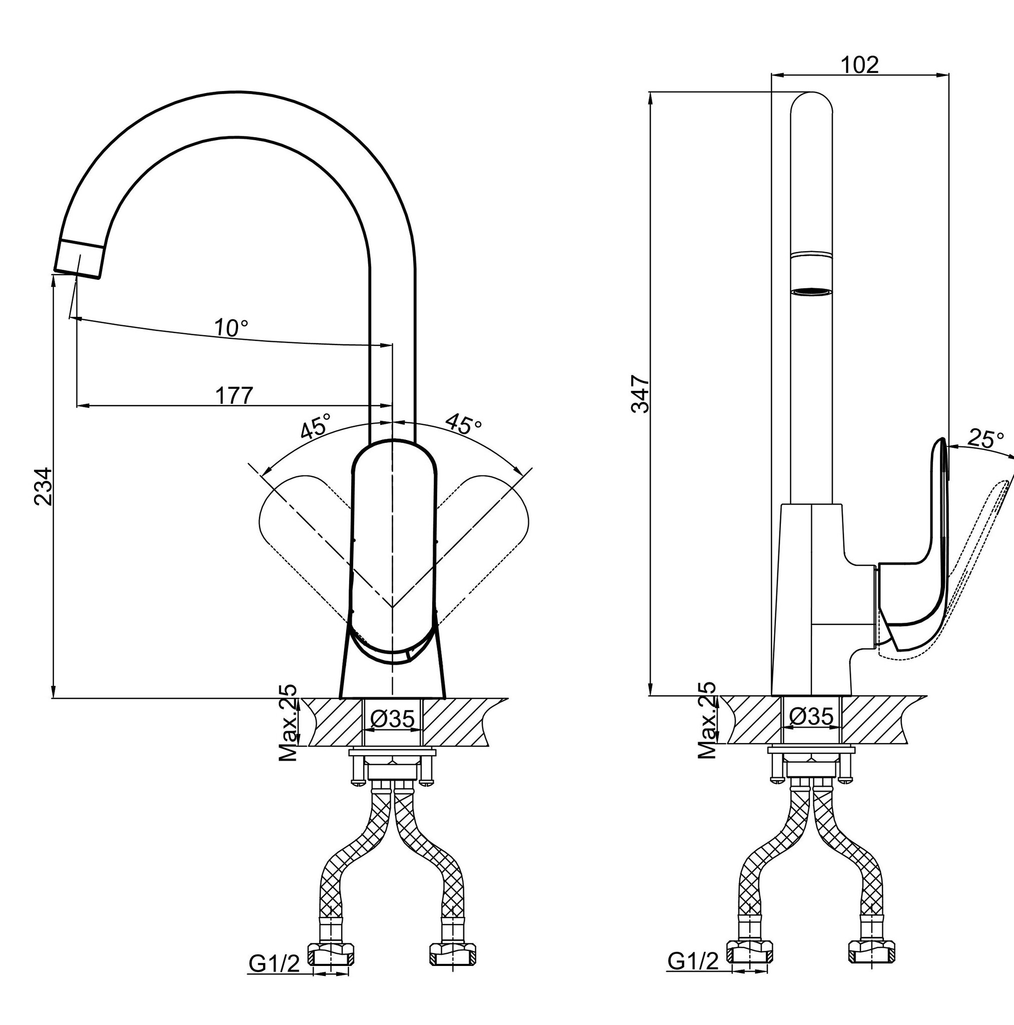Стандарт подводки: | 1/2" |