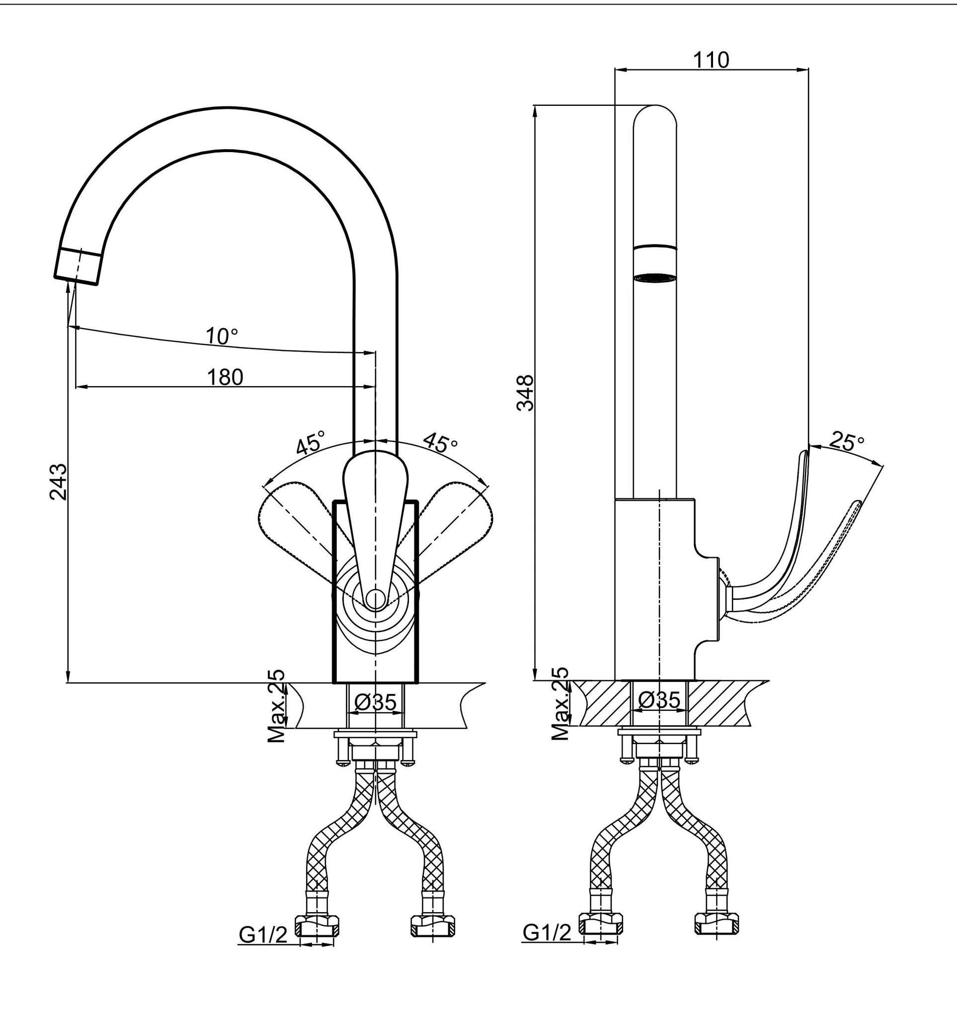 Смеситель, гибкая подводка-2шт, С-образное крепление (шпилька), паспорт изделия, брендовая сумка