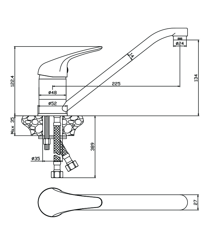 Керамический картридж SILENT OLIVE'S 40 мм Пластиковый аэратор ECO OLIVE'S Гибкая подводка OLIVE'S ½' 50 см* Комплект крепления Латунный пьедестал