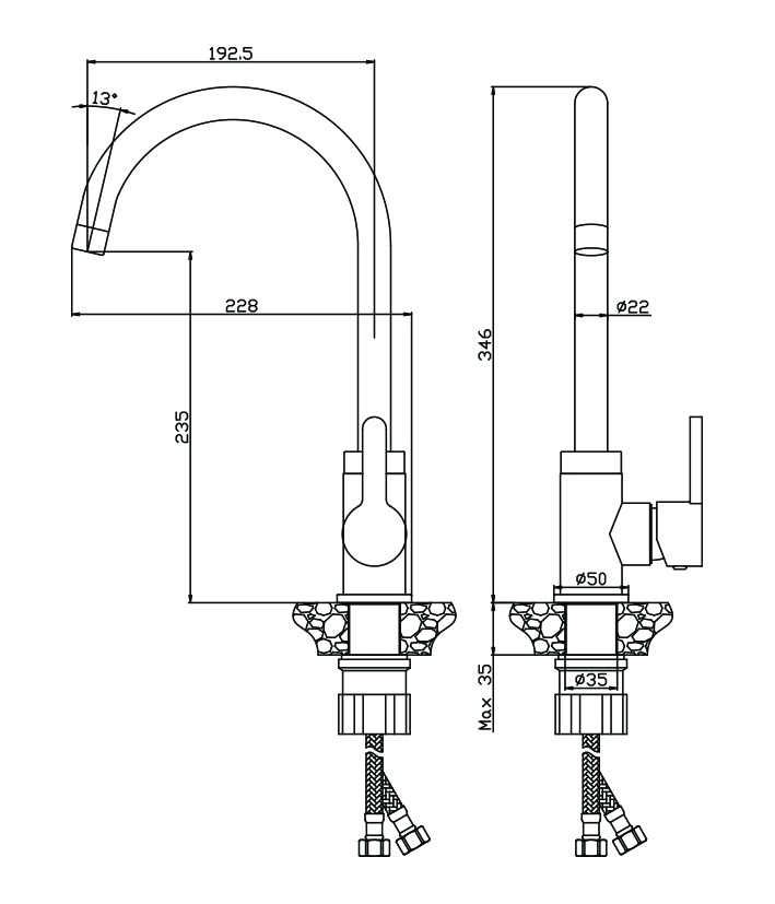 Тип подводки: | Гибкая подводка OLIVE'S ½' 50 см |