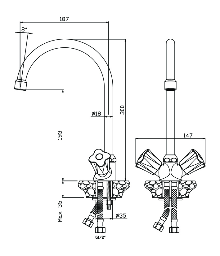 Тип подводки: | Гибкая подводка OLIVE'S ½' 50 см |