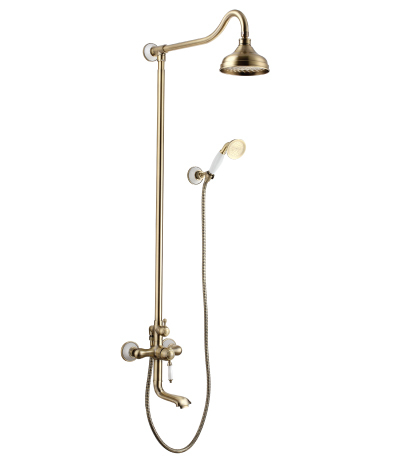 Смеситель для ванны и душа с регулируемой высотой штанги, поворотным изливом и верхней душевой лейкой "Тропический дождь"