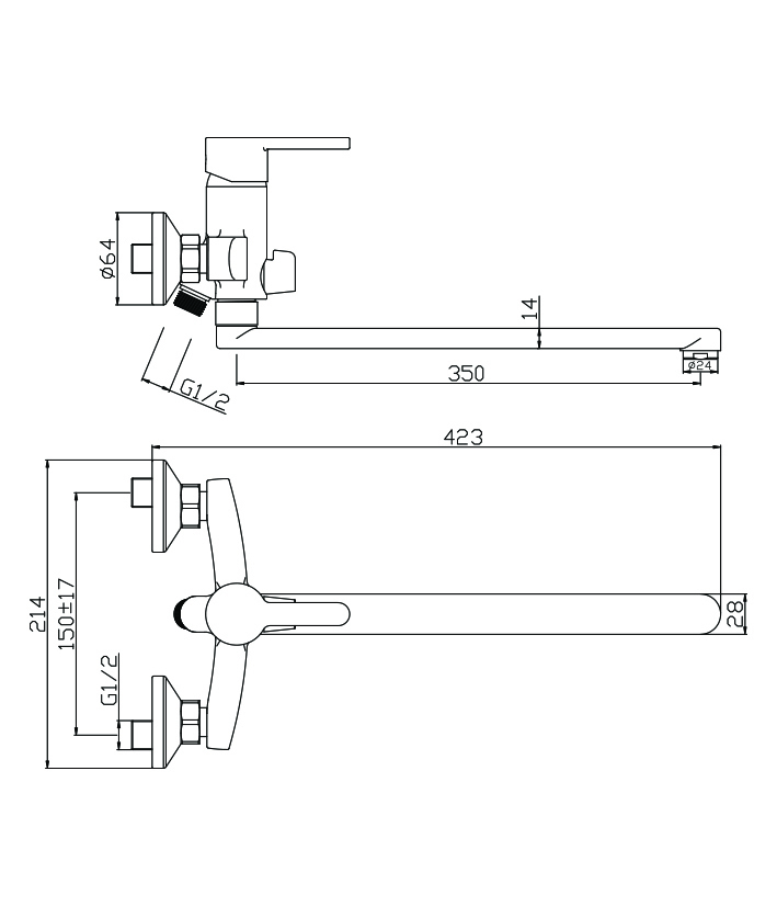 Смеситель для ванны с длинным изливом TORRES 17221TR